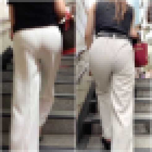 ストレートパンツからは、柔らかそうな巨乳とパンティーラインを浮かび上がらせる。