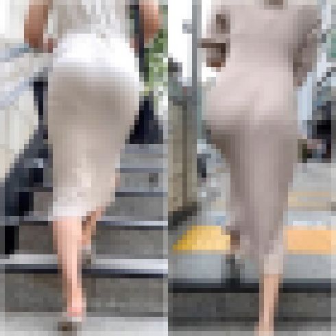 めっちゃ張り付きのいいニットワンピース姿で出勤のお姉さん。