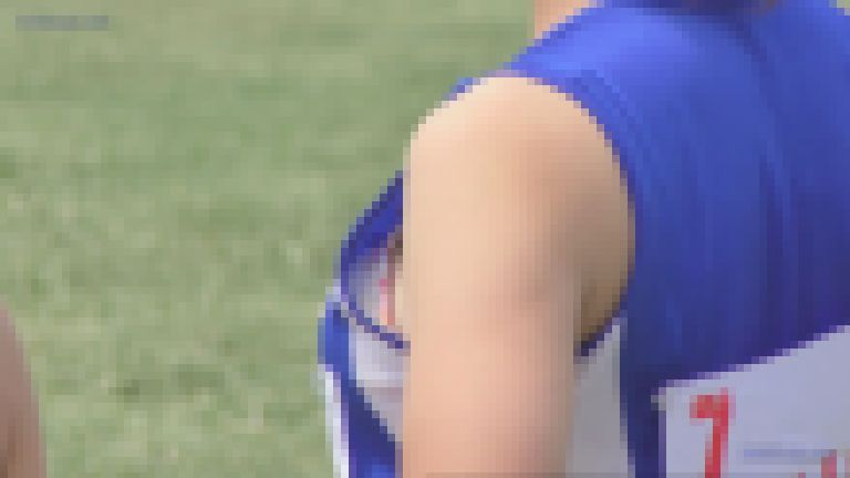 スパッツちゃんですがユニ姿でなければ陸上やってる感じが全くしない地味かわ娘。スパッツですがスタート時に上着から白いものが丸見えになっていてマイナスをフォロー。青ユニ娘も地味かわ娘も負けじと白いものを出して応戦。 (撮影者 MICK88)