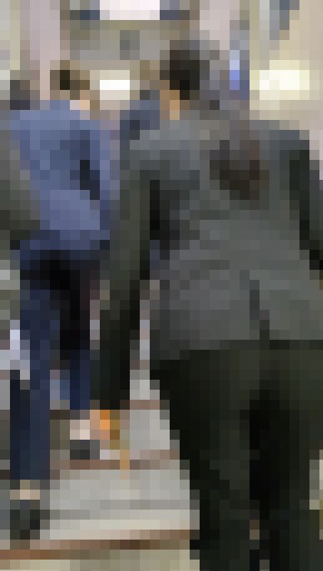 それぞれにステキではありますが、やはり目の前に迫る濃紺ストライプのパンツスーツさんが目を惹きます。しっかりとラインが透けております。