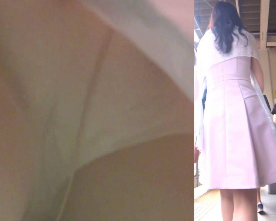 彼女はピンク色のパーティドレスを着ていました。どうやら結婚式に出席するようです。このドレスはスカート丈はそれほどミニではありませんでしたが、スカートのプリーツが浅めだったのでカメラを突っ込みやすそうです。しかもパーティドレスを着ていながらパンツの上にパンチラガードの重ね履きをする女はいないでしょう。そうと決まれば撮影を開始です。すぐにカメラを準備して彼女を追いかけていきます。