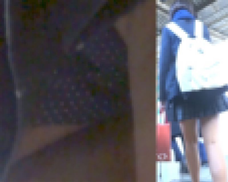 タイトル : パンチラ盗撮 制服女子 紺色の水玉パンツを激写